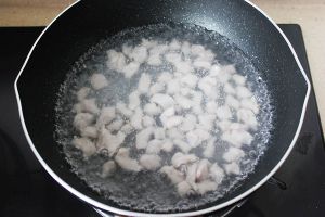 锅中水烧开,将肉丁下锅煮熟