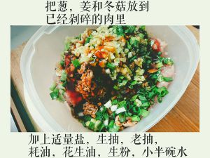虾仁与肉馅放料酒,盐,五香粉,姜粉拌好