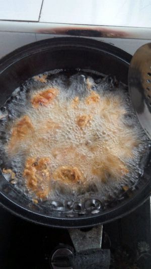 油热后(我是用手放油上方感受温度,感觉有点温度后)放入锅中炸, 注意翻面,保证受热均匀, 中小火炸8分钟左右即可,