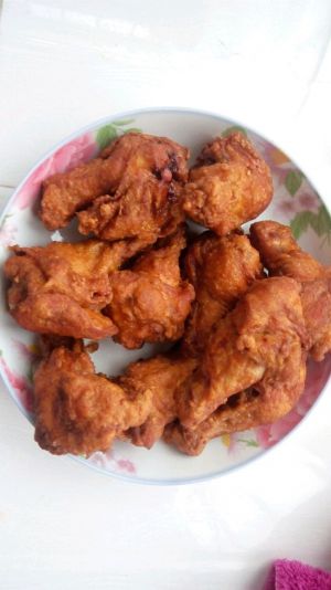 翅根10个用麻辣鲜 糖 酱油 胡椒粉 淀粉 面粉 鸡蛋抓匀腌制6小时