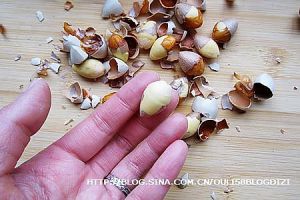 将处理过的白果和松仁倒入一起翻炒均匀;