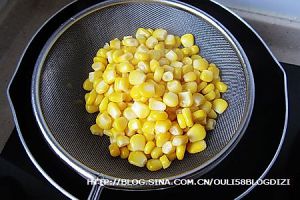 另起锅烧水,水开后,将甜玉米粒下锅汆烫1分钟;