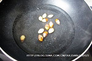 热锅下油,待油热放蒜末炒出香味,再放入松仁改小火翻炒炒出香味;