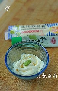 小碗中挤入色拉酱,加入一点芥末,拌匀。