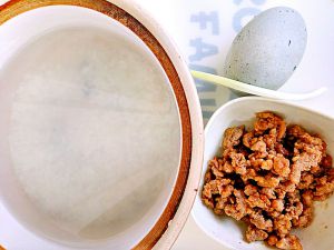 传统的粤式皮蛋瘦肉粥,是所有食材一起经过长时间熬煮而成,因此彼此水乳交融。外面很多时候吃到的皮蛋瘦肉粥,皮蛋和瘦肉丝和粥明显分离,那是生滚粥-也就是熬好的白粥,再度烧开,将皮蛋和瘦肉放进去,外加食材熟就离火。两者滋味差距甚远,要美味,还是要耐得住时间。
