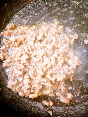 肉馅,加油,稍炒,加酱油。之后放锅里