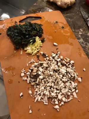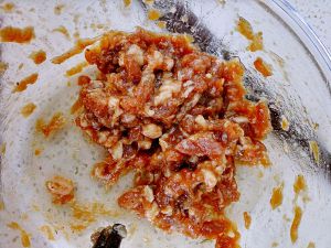 肉调制成肉馅,我用的量比较少,提点味道就好