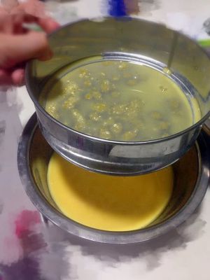 低粉过筛,搅拌至无颗粒(可以再过筛下挞水)