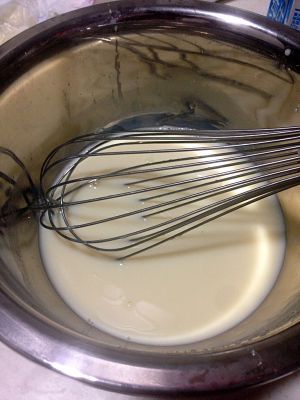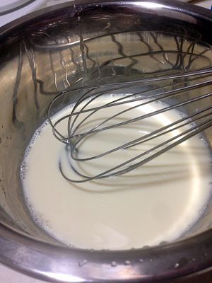 把牛奶、淡奶油和细砂糖放入干净的大碗中隔水加热搅拌融化细砂糖即可。