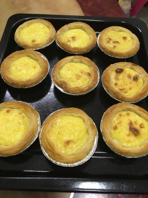 放入烤箱,210度,20到25分钟,蛋挞出现焦点即可