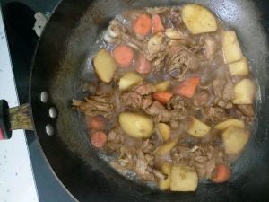 这会儿就可以放入土豆胡萝卜了, 当然如果爱吃辣的人,这会儿也可以放些青椒神马的。
