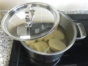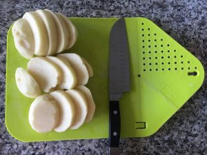 土豆切片上锅蒸30分钟,蒸好后捣成土豆泥,备用。
