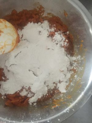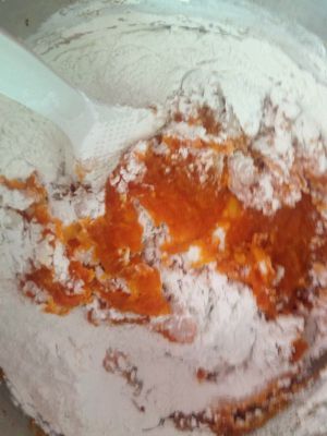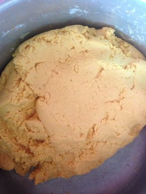 热南瓜泥+糖拌匀 或冷南瓜泥+糖粉拌匀。 这就是糖和糖粉的所用之处的区别。 重点是:分次加入糯米粉,先搅拌后再戴手套揉匀,由于南瓜泥成品的含水量不同,所需加入的糯米粉量也会有所不同。 记住状态:最后糯米面团为不粘手、不开裂、手感呈耳垂状,调整到这个状态即可。