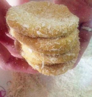 做成圆形或其它自己喜欢的形状,裹一层面包糠