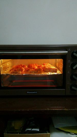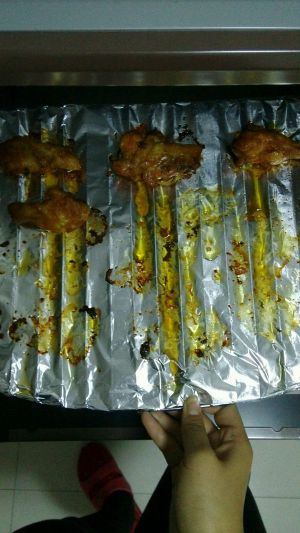 烤到一半时间时将翅根(中翅)翻个,再刷一遍料粉!装入烤箱接着烤!