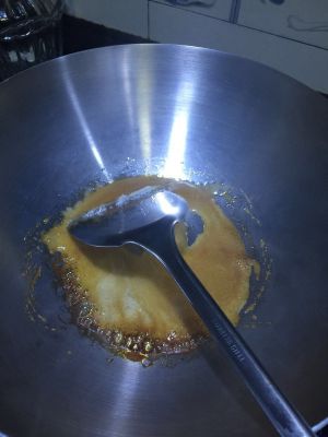 热锅放入糖,转小火化开,不要糊了。