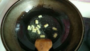 放入姜,炒香。