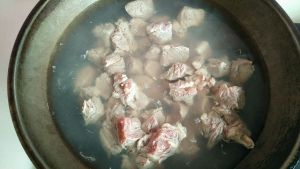 水烧开,牛肉倒入,焯血沫。