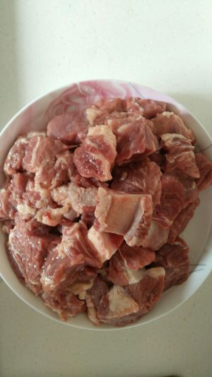 土豆适量,切块,最好大点,放入水中,去淀粉。