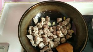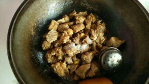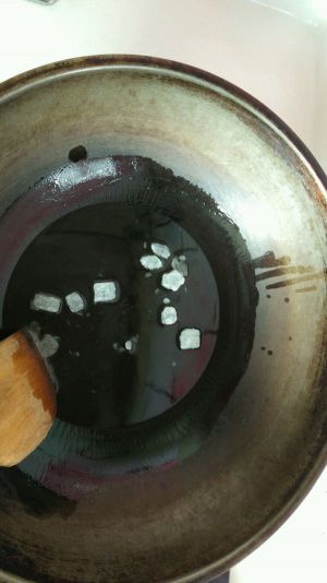 放入冰糖,炒化,但不要变色。