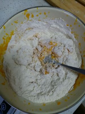 等南瓜糊冷凉后加入糯米粉和匀,不要太软,不然难塑型。