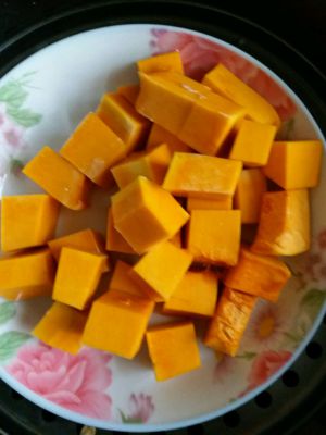 南瓜去皮切块,上锅蒸熟,以筷子可轻易插入为准。