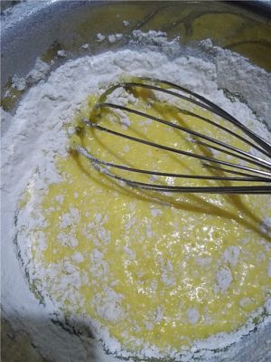 搅拌均匀的蛋黄糊。