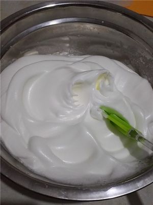 剩下的糖分三次倒入蛋清中,打发