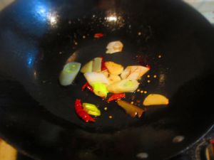 再放入肉,加入适量的盐和鸡精,翻炒熟即可出锅