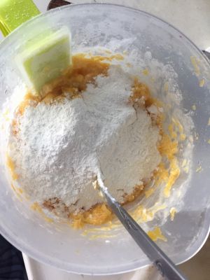 倒入红豆馅料拌匀。我用的是现成的蜜红豆。相当于豆沙,都我不爱豆沙 所以用颗粒状的红豆