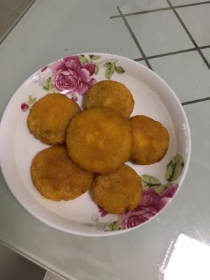 锅内加油烧热,做好的饼放入锅内一面煎至金黄后翻面,煎至两面金黄即可