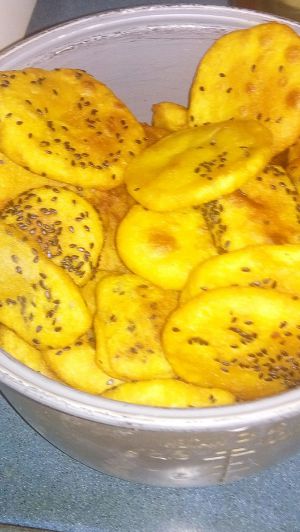 把面团做成一个个小面饼,粘上一点芝麻。放到油里炸。油不再太热1000度就好。炸有点黄就翻面了。