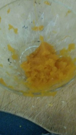 南瓜去皮,再切薄片放到蒸笼里面蒸熟。拿出来放凉。