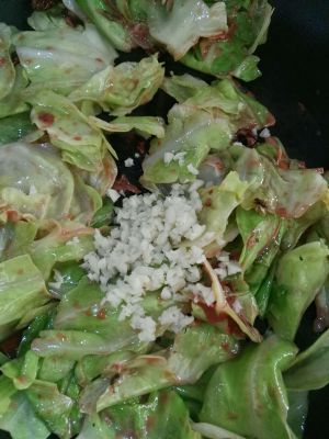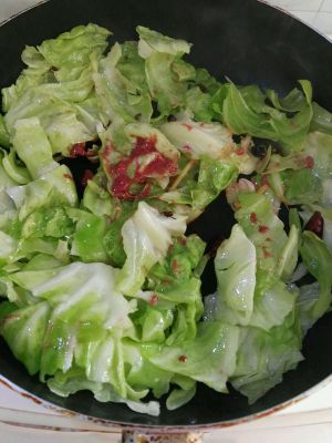 放入包菜翻炒,包菜变软,加入腐乳糊。