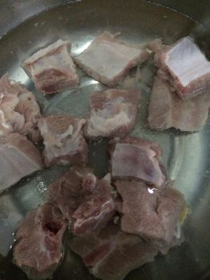排骨洗净后,下锅倒水煮开,将水倒掉,从新加水煮