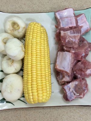 准备好所需材料,洗净切好备用……排骨洗净浸泡半小时备用……