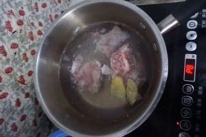 排骨洗净后冷水下锅加姜片,焯2分钟左右。