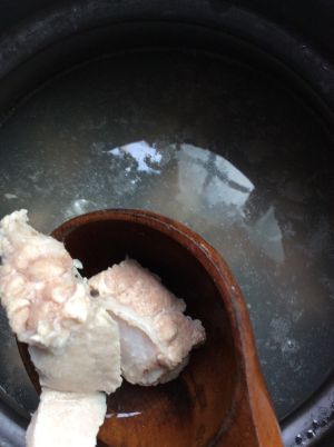 过水的排骨捞出洗干净,加入砂锅,加入姜片,加入热水开始炖,大火半小时,慢火1小时,然后加入准备好的山药继续小火炖15分钟左右,加入适量盐,起锅