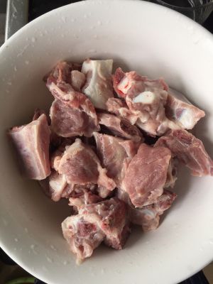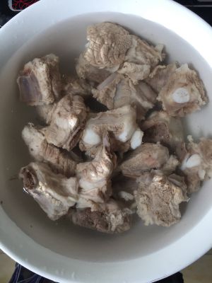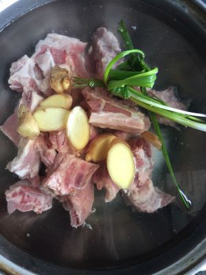 拿出冰箱里封存的排骨,放入冷水锅里,开火