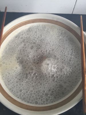 放盐调味,出锅后放点韭菜或者葱花,可以不放。也可以放点胡椒粉。如果汤多,就可以放到碗里,再在剩下的汤里面放冬瓜,之类的,碗里的汤凉了会变成冻~下次直接加水,加菜又出一锅汤!
