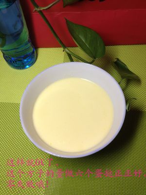 取两个蛋黄打散,用勺子一挑就出来了很省事,另外取一个碗,放牛奶,白糖,炼乳,搅一下,放微波炉里叮两分钟至糖和炼乳融化,把融化好的液体倒入蛋黄液中搅拌融合,用筛子过滤下浮沫