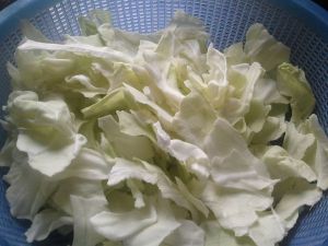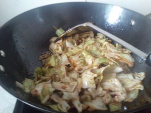 撕碎的包菜入锅(包菜要晾干水分)