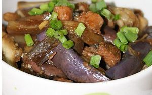 茄子煮熟'咸鱼香味溢出'撒上葱花'可以开吃了