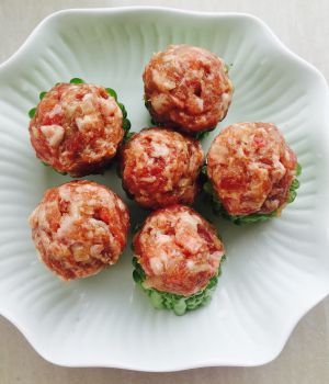 将前腿肉剁碎,越细越好。最好不要用料理机打,因为这样做出来的肉会比较粘,纯手工剁出来的肉,口感会更好