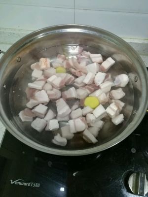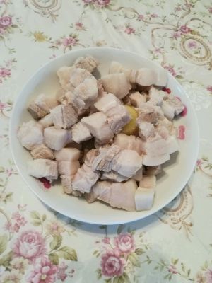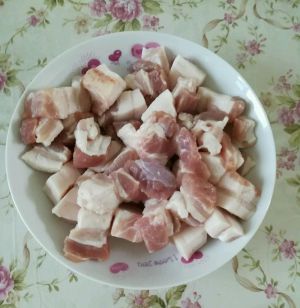 猪肉切成五厘米左右小方块,一定要挑好点的五花肉,最好是肥多瘦少