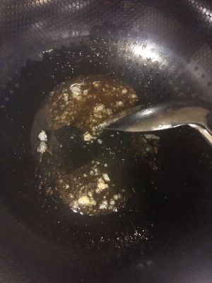 倒入少许冰糖不停搅拌做糖色,此时一定要小火,冰糖根据个人口味放,喜欢甜一点的多放点。