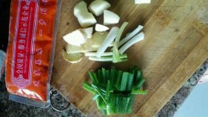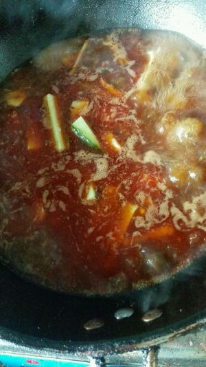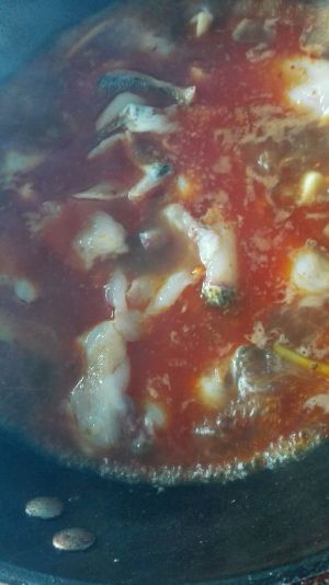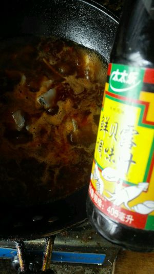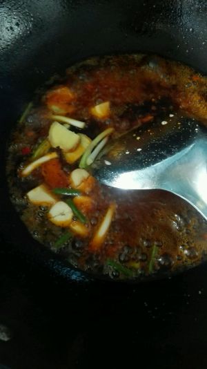炒出红油放入葱姜蒜,翻炒一会儿放入水,转大火,加入适量盐,料酒,酱油,鸡精,大火烧开