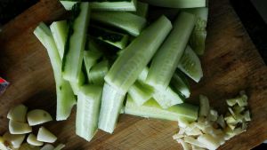 开了以后放入黄瓜条!