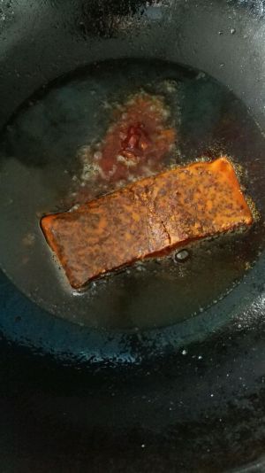 鱼腌制20分钟左右,锅里油温热的时候放入红99和豆瓣酱小火翻炒出红油!