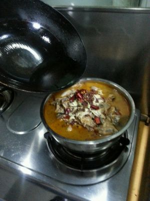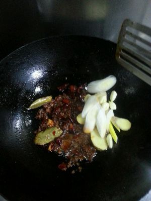起锅,放入菜籽油,烧热后放入葱姜蒜辣椒花椒,爆香,要掌握火候,然后放入火锅底料一块或者豆瓣酱一勺,炒出红油。然后加水